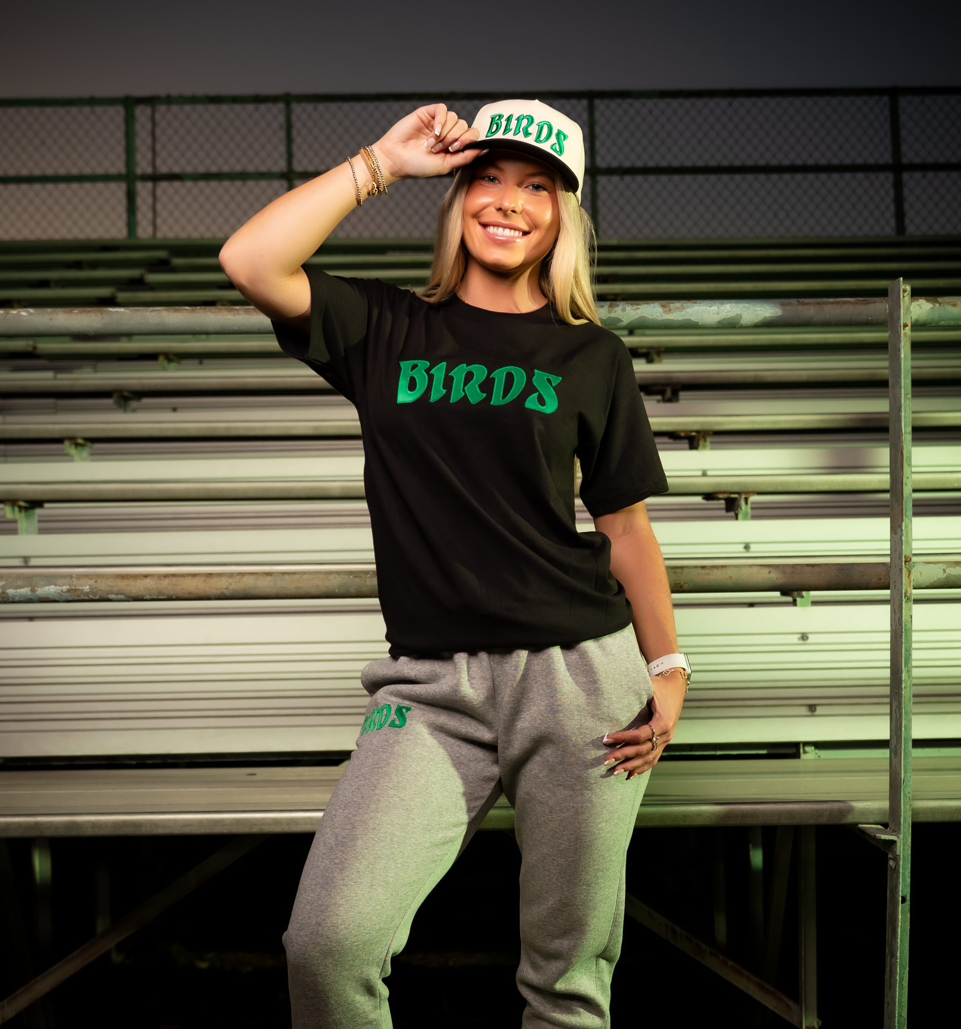 - Hand Stitched Vintage Birds Twill (Sewn on letters) in Kelly Green